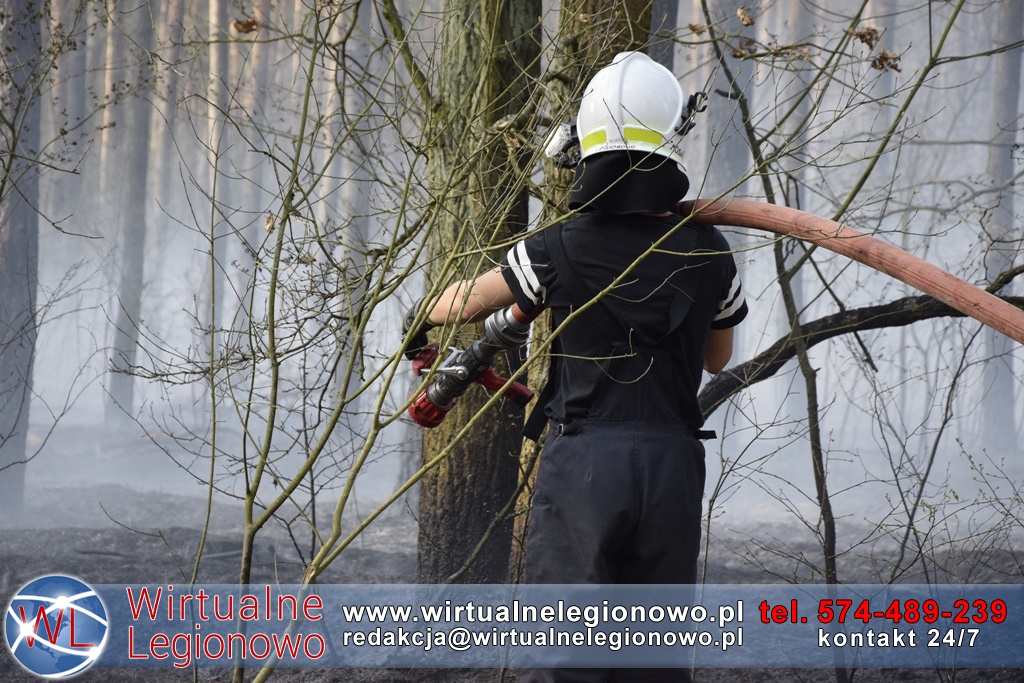 Pierwsze zgłoszenie wpłynęło do Miejskiego Stanowiska Kierowania w Warszawie. Na miejsce pożaru od ulicy Chlubnej w Warszawie zadysponowano zastępy z JRG10. Po ustaleniu, że pożar jest na terenie powiatu legionowskiego, informacja trafiła do legionowskiego Powiatowego Stanowiska Kierowania. Okazało się, że pożarem objęte jest poszycie w lesie, którego ściółka była bardzo wysuszona. Jako wsparcie do dostępie do wody na miejsce przyjechały ciężkie zastępy z OSP Skrzeszew i Kałuszyn.