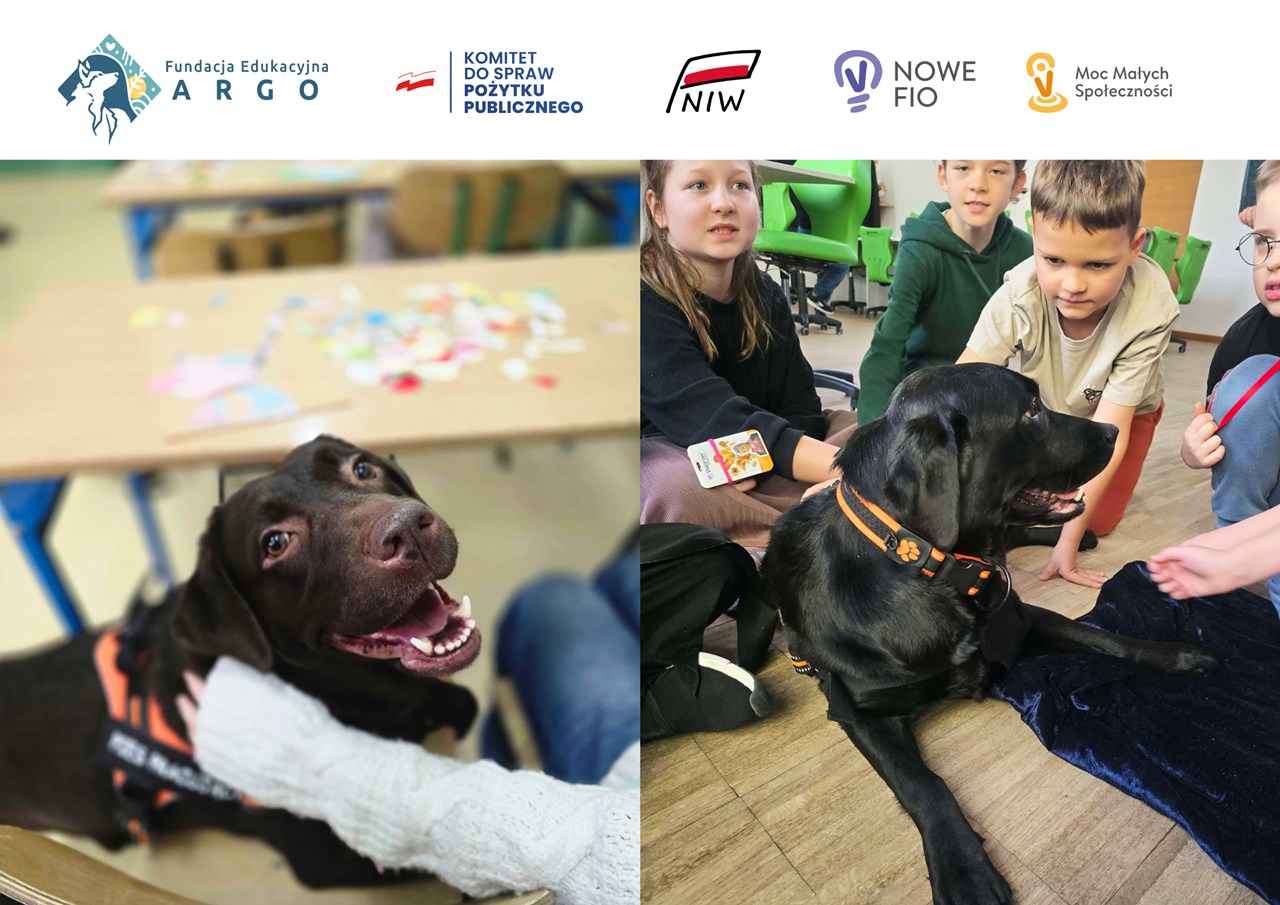 W ostatnich tygodniach w szkołach na terenie powiatu legionowskiego pojawili się wyjątkowi goście: Diuna i Tajga, dwie labradorki-terapeutki. To one, oczywiście wspólnie z edukatorami z Fundacji Edukacyjnej ARGO, poprowadziły serię zajęć, które połączyły edukację kynologiczną z arteterapią. Projekt „Z Łapą na Sercu” autorstwa Barbary Wymazał, Prezes Fundacji Edukacyjnej ARGO, okazał się być strzałem w dziesiątkę.