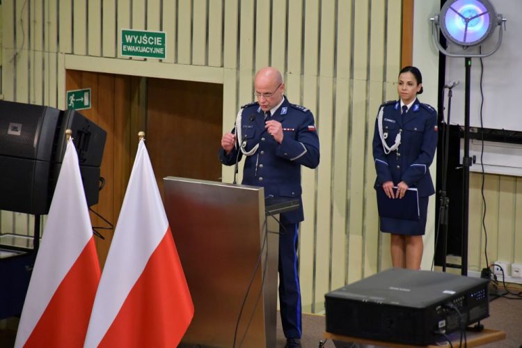 W podniosłą atmosferę uroczystości wprowadził zebranych Chór Policji Garnizonu Warmińsko-Mazurskiego, który wykonał Hymn Państwowy Rzeczypospolitej Polskiej. Następnie głos zabrał gospodarz wydarzenia – Komendant Centrum Szkolenia Policji insp. Ryszard Jakubowski, witając wszystkich zgromadzonych oraz podkreślając znaczenie tego szczególnego dnia dla całej policyjnej społeczności.