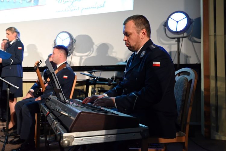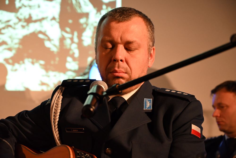 Chór Policji Garnizonu Warmińsko-Mazurskiego uświetnił spotkanie niezwykłym koncertem pieśni patriotycznych. W skład Chóru wchodzą czynni funkcjonariusze Policji – artyści w mundurach, którzy na co dzień strzegą porządku publicznego, a po służbie odnajdują wspólny język w muzyce. Od blisko 10 lat tworzą jedyny w Polsce Chór, w którym śpiewają czynni funkcjonariusze Policji.