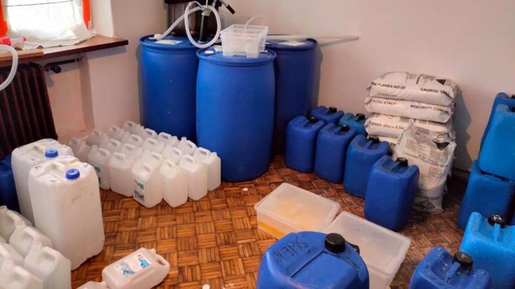 Policjanci z Komisariatu Policji w Nieporęcie po uzyskaniu informacji, że w jednym z domów w Nieporęcie najprawdopodobniej została przygotowana linia do produkcji narkotyków, natychmiast udali się na miejsce. Po wejściu do wynajmowanego lokalu policjanci potwierdzili pozyskane informacje. W jednym z pomieszczeń natrafili na aparaturę do produkcji narkotyków, w kolejnych natomiast bańki i namiot, w których zostały umieszczone półki, a na nich kuwety z brunatną cieczą oraz kryształy. Substancje te wydzielały charakterystyczny duszący zapach.