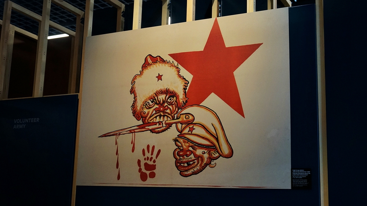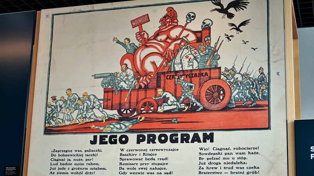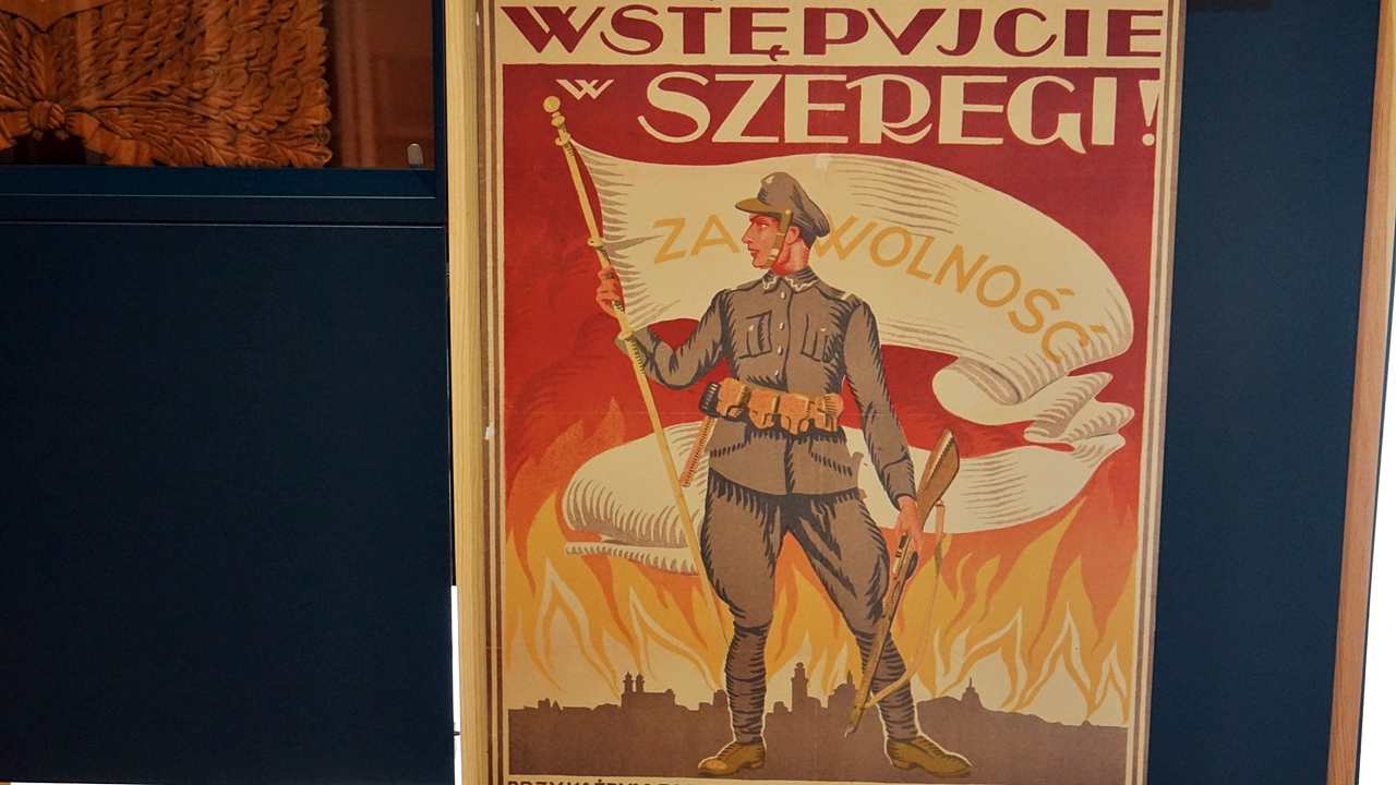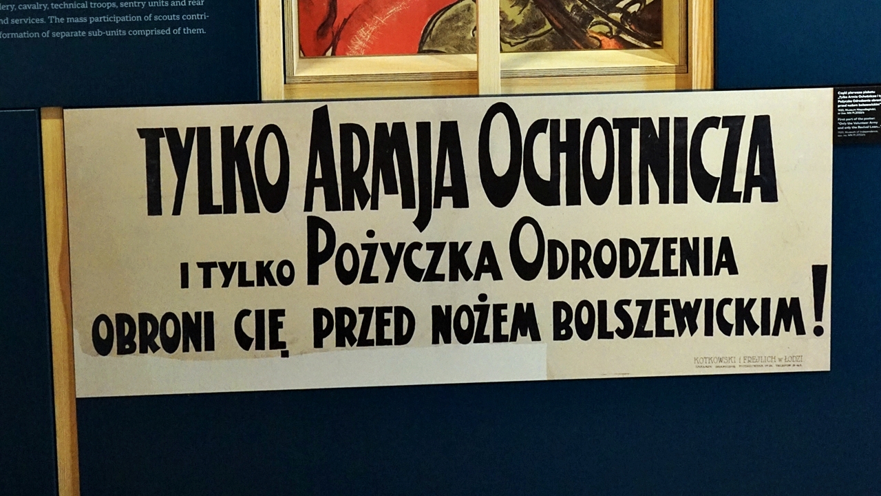 – Trzonem wystawy stałej są eksponaty. Wśród kilkuset prezentowanych obiektów znalazły się unikaty z okresu wojny polsko-bolszewickiej i współczesne dzieła sztuki upamiętniające Cud nad Wisłą – wyjaśnia Adam Bacławski, kierownik muzeum. – Część z nich to darowizny od osób prywatnych i depozyty pozyskane m.in. z Muzeum Zbrojownia na Zamku w Liwie, Muzeum Polskiego Ruchu Ludowego, Muzeum Wsi Mazowieckiej w Sierpcu, Muzeum Mazowieckie w Płocku czy Muzeum Harcerstwa w Warszawie. Jednak zdecydowana większość pochodzi ze zbiorów Muzeum Niepodległości. Na uwagę zasługuje bogaty zbiór druków ulotnych, a w szczególności kolekcja plakatów propagandowych – dodaje muzealnik.